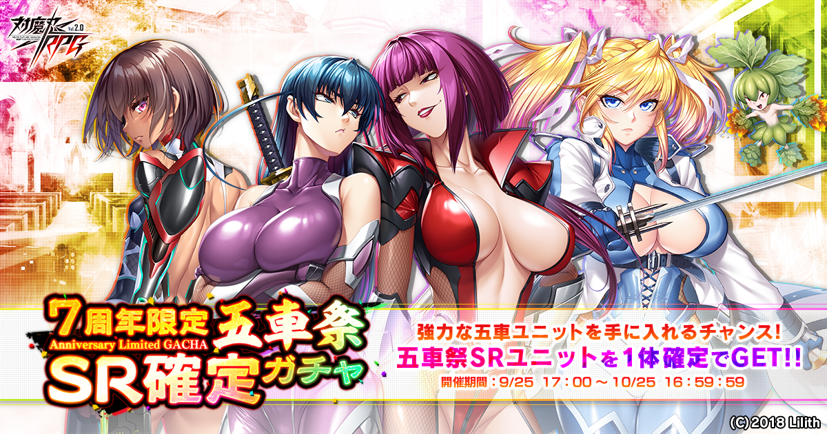 『対魔忍RPG』にて7周年限定五車祭SR確定ガチャが開催!さらに7周年記念特別ログインボーナスも開催中!