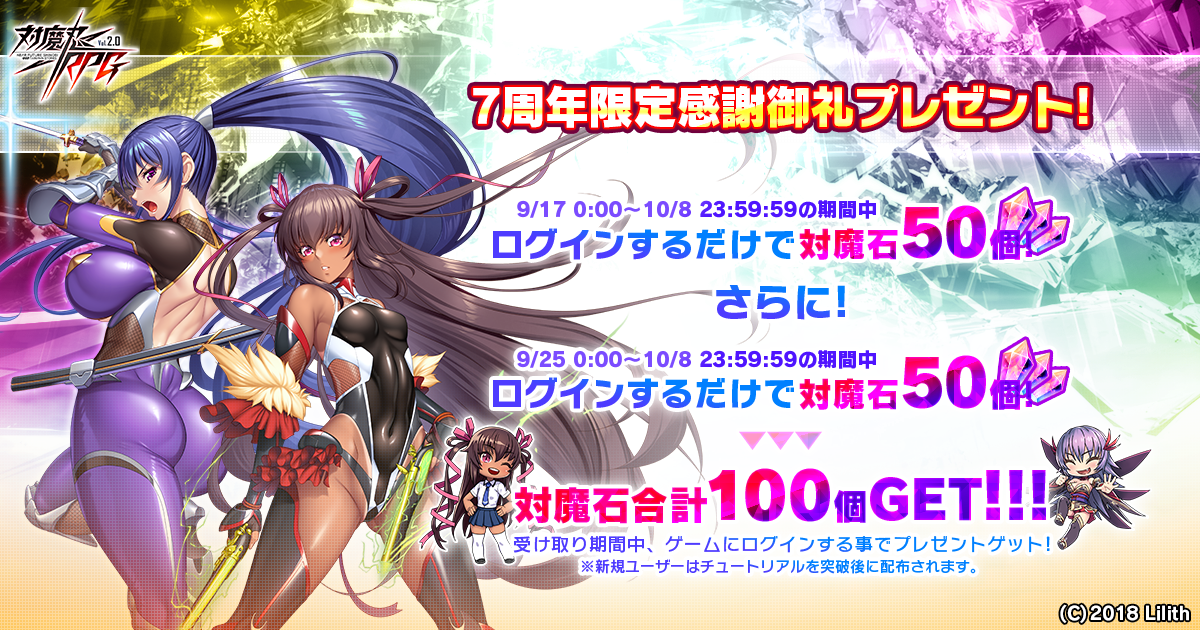 7周年を記念して合計で対魔石100個をプレゼントいたします!