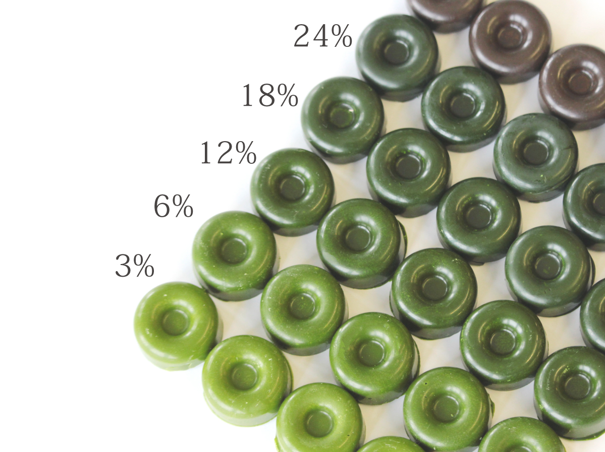 大人気「濃度別抹茶チョコ食べ比べセット」は抹茶濃度3%から24%まで異なる濃度の抹茶チョコを楽しめる大人気商品です。