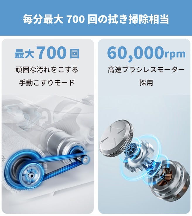 こびりついた汚れも1分間に700回転する