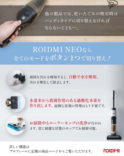 ROIDMI NEOなら、これ1台で「掃除+モップがけ+除菌」まで完了!