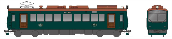 今回リニューアルした731号車は、リニューアル前の「ノスタルジック731(ななさんいち)」を継承し、1925(大正14)年の叡山本線開業当時に活躍していたデナ1型をイメージしたデザインとしながら、意匠を凝らした一灯式前照灯を車両前面に配置し、外観はマット塗色風の質感に仕上げ、重厚感や高級感を演出するなど、新たに生まれ変わります。