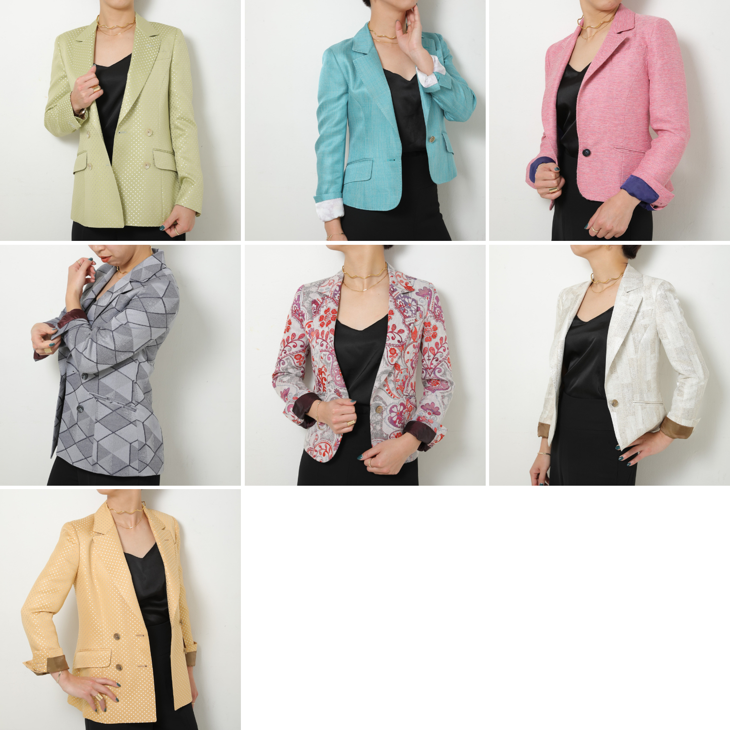 「Luciorta」が提供するジャケットは、当社がオーダーカーテンで使用する特注で織られたカーテンのオフカット生地を使用。株式会社まるさんかくしかくがオーダーメイドスーツ事業で培った技術を生かし、カーテン生地ならではの柄や質感の特長を引き出しながら、一着ずつ丁寧に仕立てています。登録をしてくださった本サービスのご利用者様は、そのラインアップの中から希望のジャケットを選び、貸し出しを受けることができます。