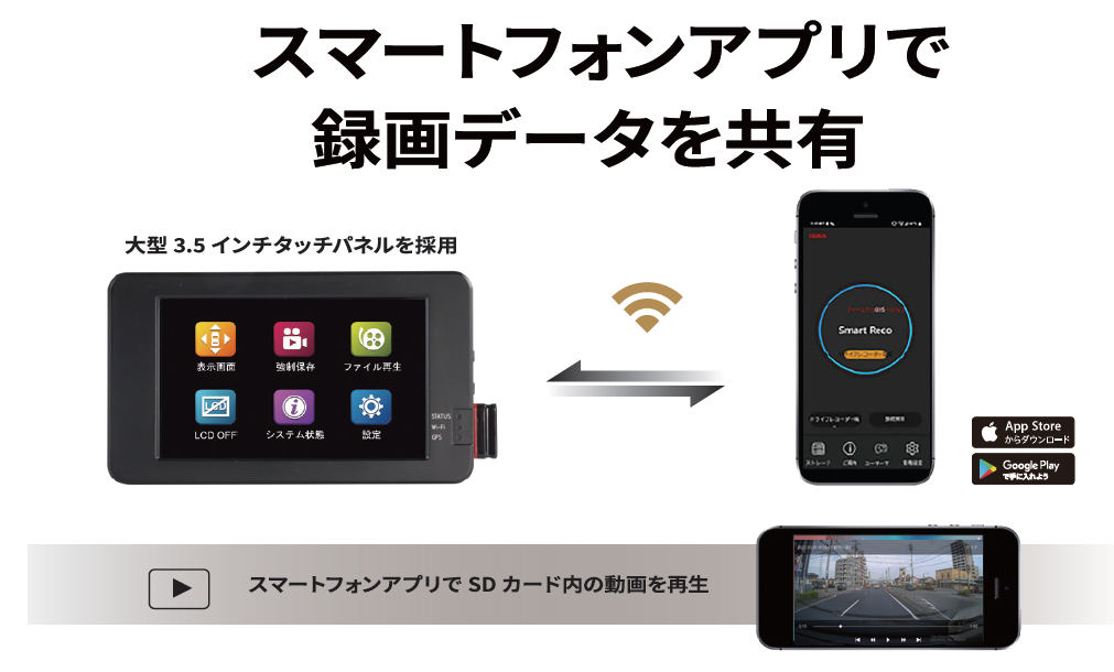 Wi-Fiアプリにも対応し、本体からスマートフォンへの動画の保存も可能になり、より便利に活用することができます。