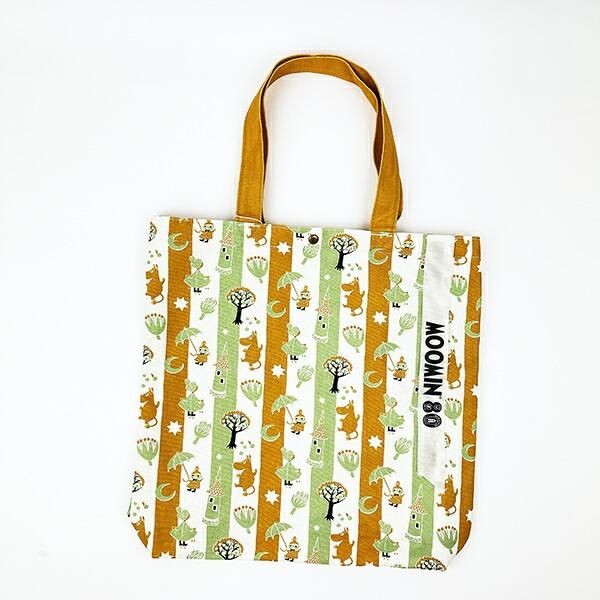 まずは紹介するのはこちら、にぎやかな総柄デザインの **ムーミン 80th 刺繍トートバッグ** です。