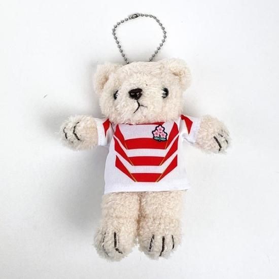 お次は、ラグビーを応援する、日本代表のマスコットベアのご紹介です。サイズは、14cm×11cm×7cmです。