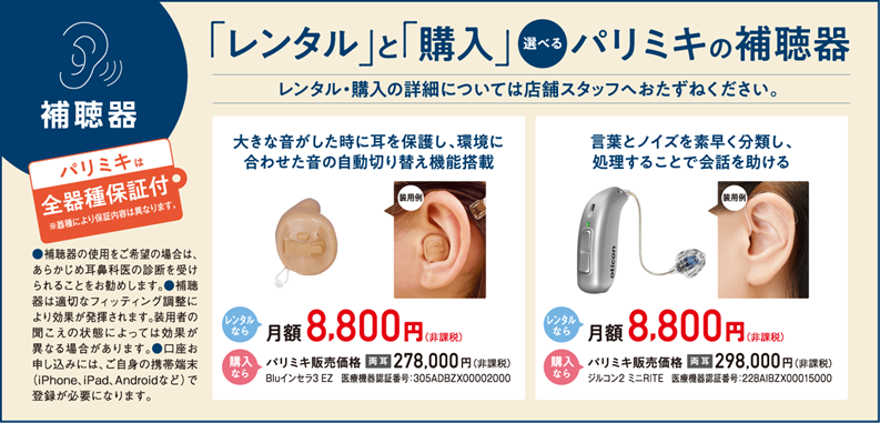 ■「レンタル」と「購入」選べるパリミキの補聴器