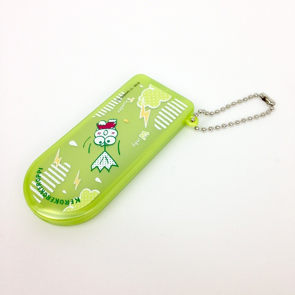 けろけろけろっぴグッズで大人の嗜みを♪こちらはコートやニットなどのほこりや汚れを落とす、リントブラシです。風に飛ばされているけろっぴは、なんだかちょっと楽しそう。