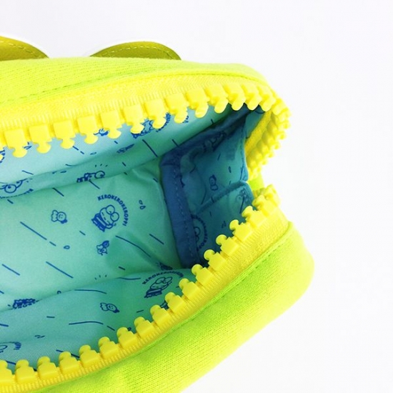 存在感あるメガジップで遊び心のあるデザイン。裏地にもけろっぴがプリントされていて、中までかわいく!というこだわりが感じられます。