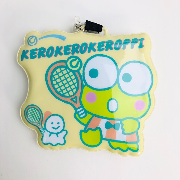 いつも使うパスケースも、けろけろけろっぴにしちゃいませんか?ダイカットのパスケースは友達のてるてる坊主の女の子『てるてる』とテニスをするけろっぴがかわいいデザイン♡