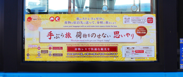 本連携の第一弾として、東運輸の路線バス車外に「手ぶら観光」を呼びかける川柳ポスターを掲出し、観光客への認知向上と利用促進を図ります。
