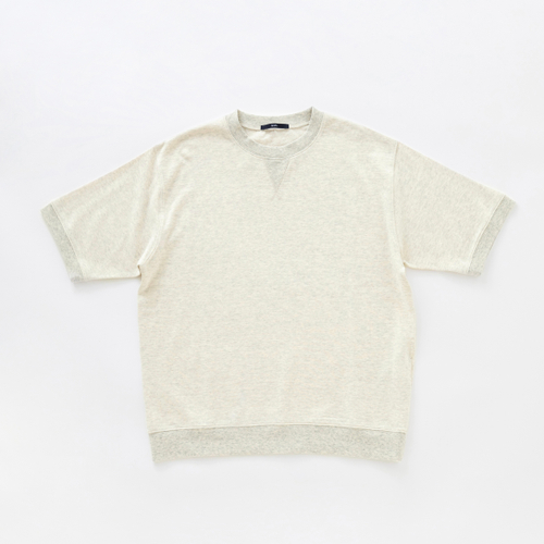 ポリ乳酸繊維PLAとコットンブレンドのインレイ裏毛を使用したスウェットTシャツ。ライトウェイトで心地良い裏毛素材でリラックス感あるサイズフィットに仕上げており、1枚着としても着用可能な汎用性の高い一着です。