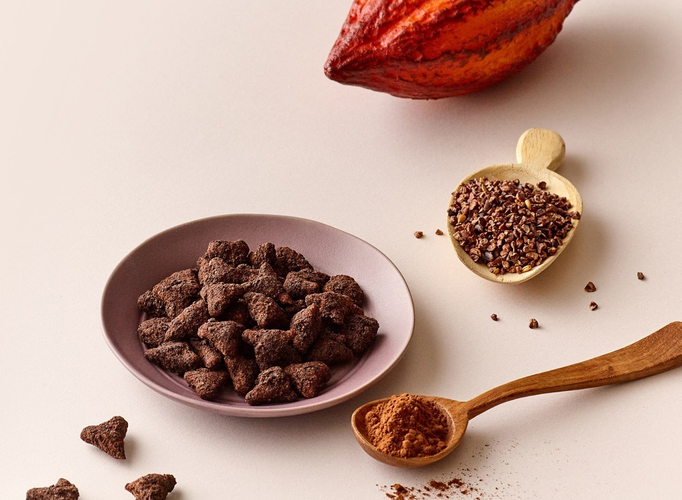 黄えんどう豆パフ(国内製造)、てんさい糖、ココアパウダー、アーモンド、こめ油、豆乳(大豆を含む)