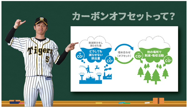 更に、『ウル虎の夏』期間中は、阪神電車の全線(本線、阪神なんば線、武庫川線及び神戸高速線)の各駅の自動構内放送や、試合中の球場ビジョン(スコアボード)に近本選手(大阪ガス出身)が登場し、カーボン・オフセットのPRとCO2排出量の削減に向けた呼掛けを行うことにより、多くのお客様に地球温暖化防止などの環境問題への関心を高めていただきたいと考えています。