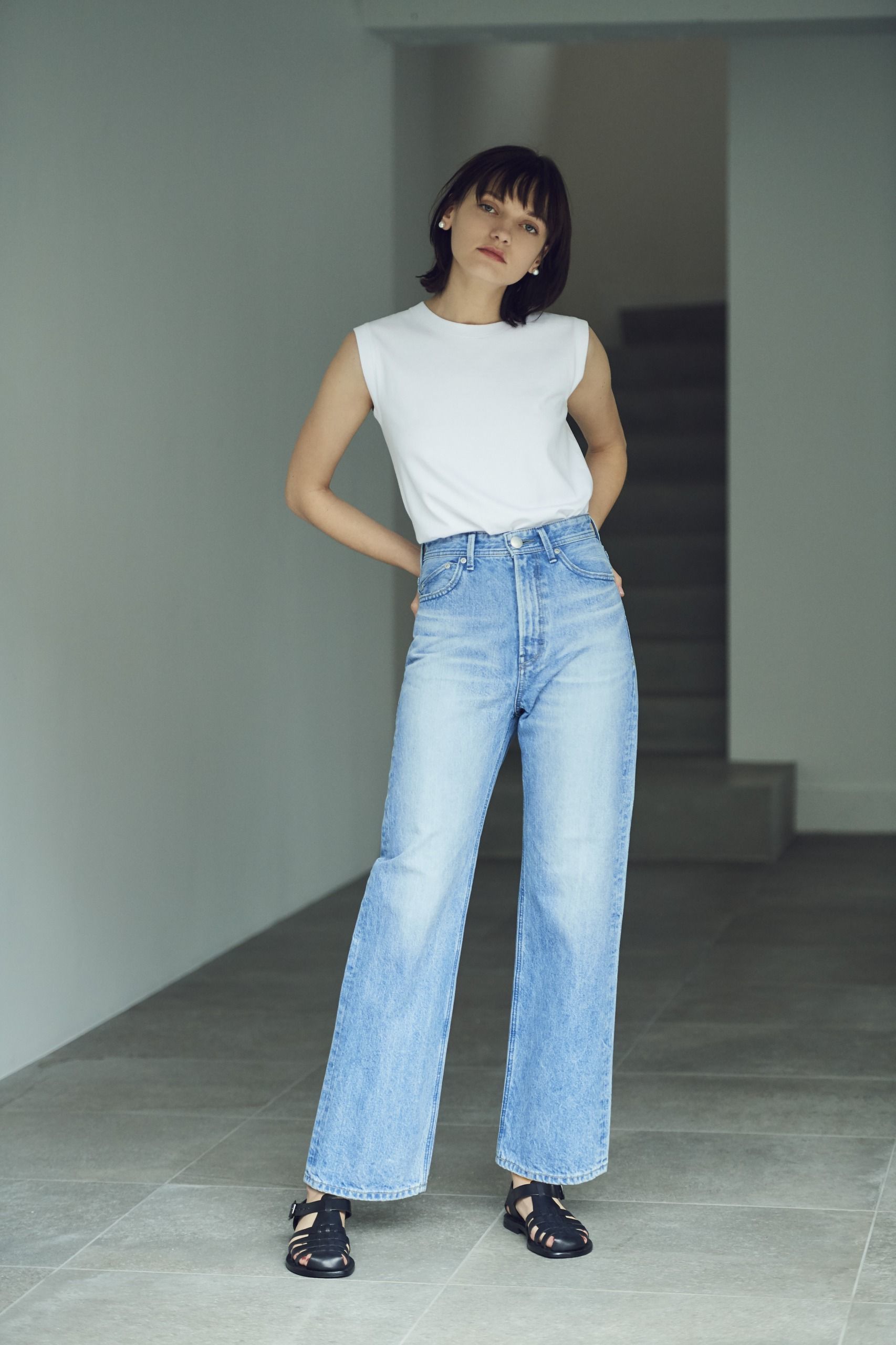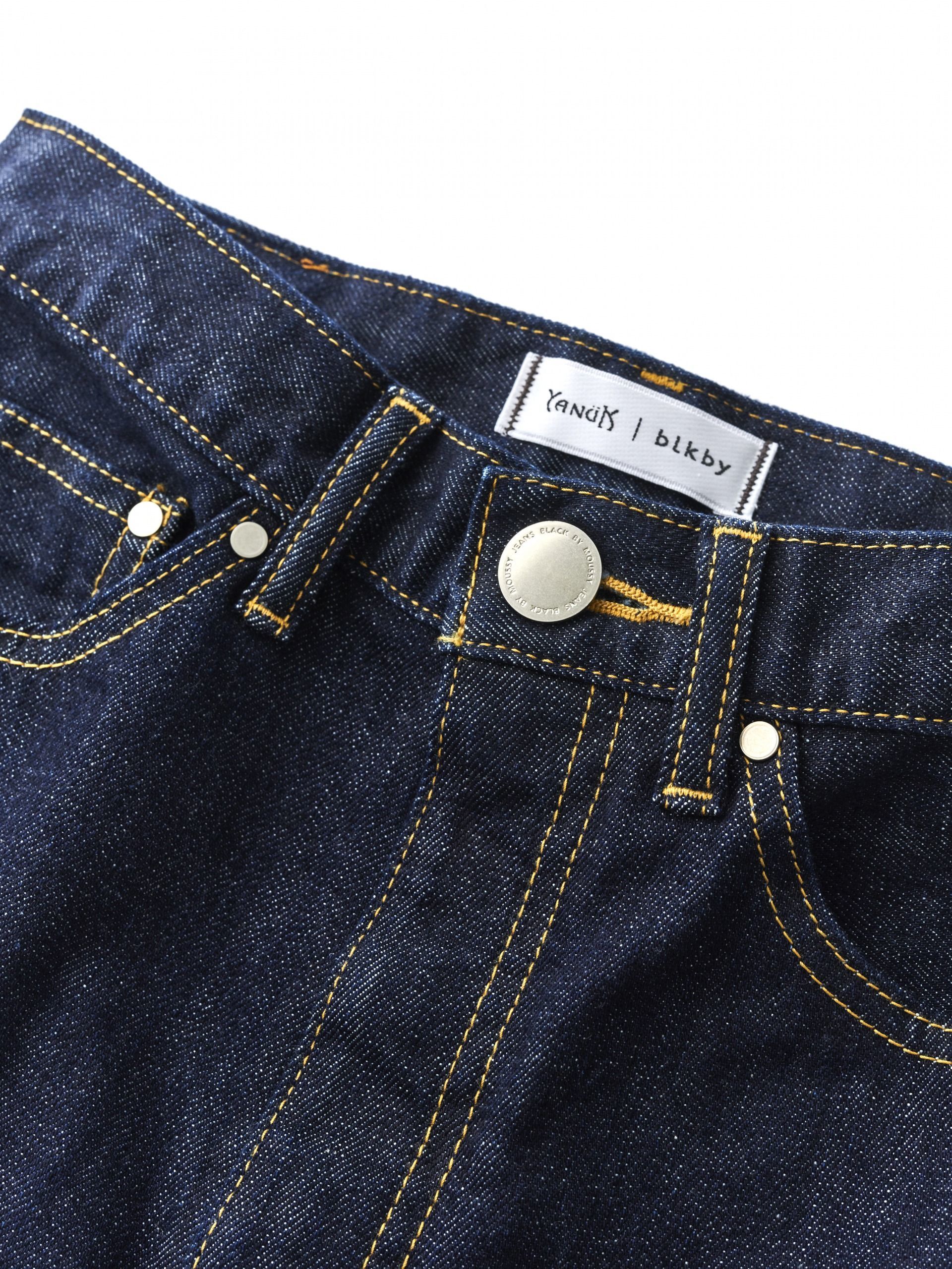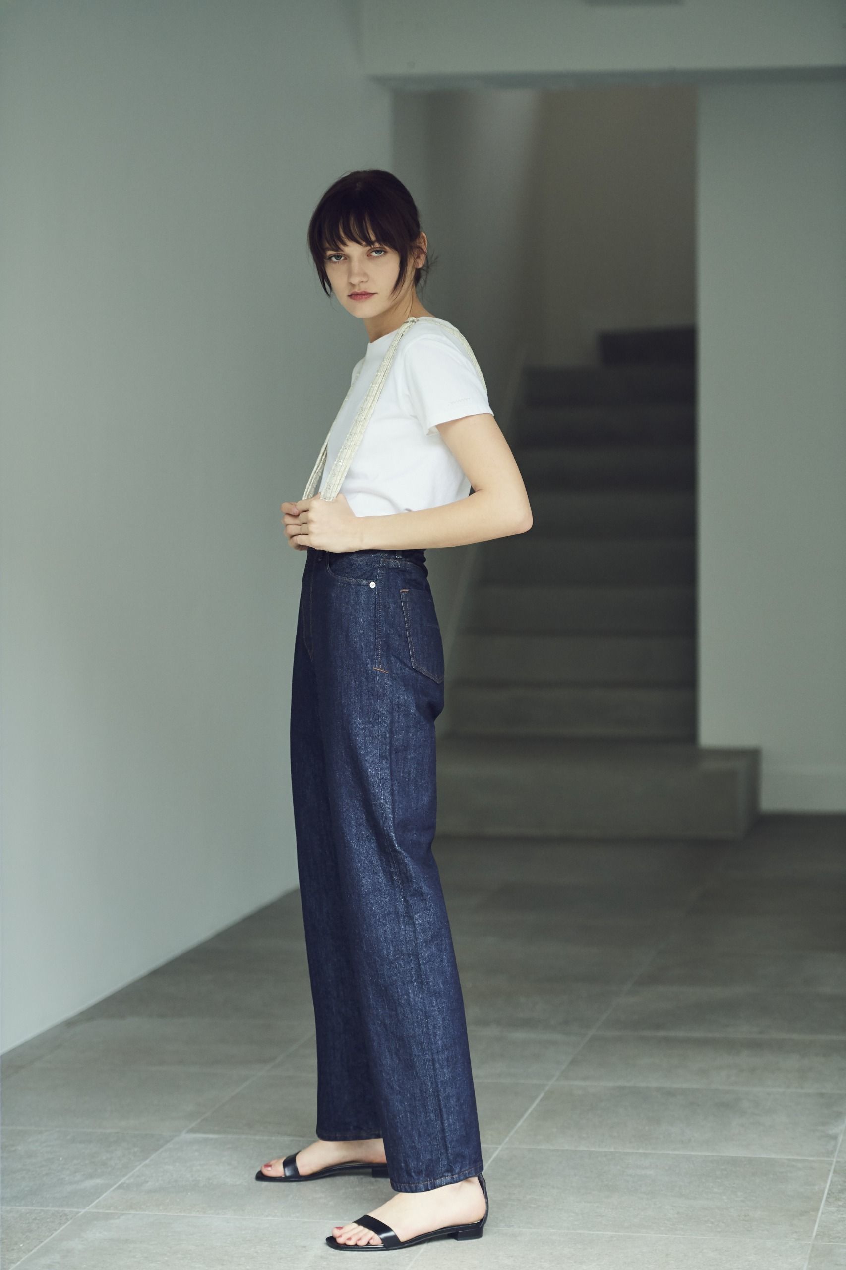 YANUKが考えたデニムはセミワイドに深めの股上がトレンド感たっぷりのハイウエストストレート。BLACK BY MOUSSYの顔とも言えるノンストレッチのデニム生地をYANUKらしく女性に寄り添う優しいシルエットに落とし込みました。ほんのり脚から離れる絶妙なワイド感が身長を選ばずスッキリ穿きこなせます。6ポケットやY刺繍とYANUKのシグネチャーディテール入り。全2カラー。