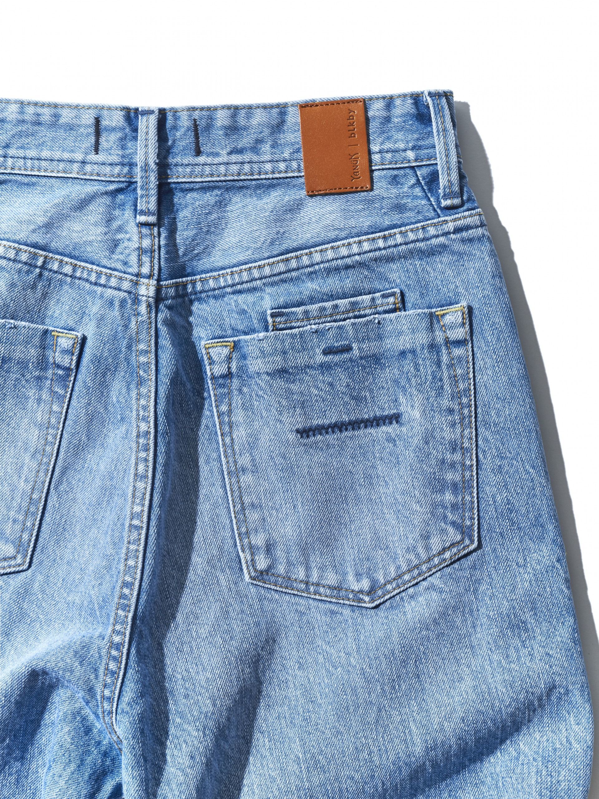 「BLACK BY MOUSSY」で人気を博している綿100%の生地と、「YANUK」の王道であるソフトな穿き心地を追求した生地。それぞれお互いのブランドを代表するデニム生地をトレードすることで新しいデニムが生まれました。