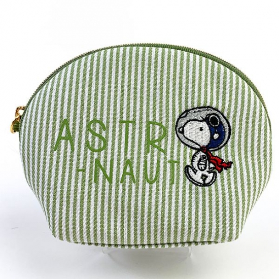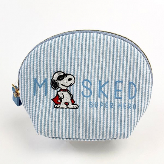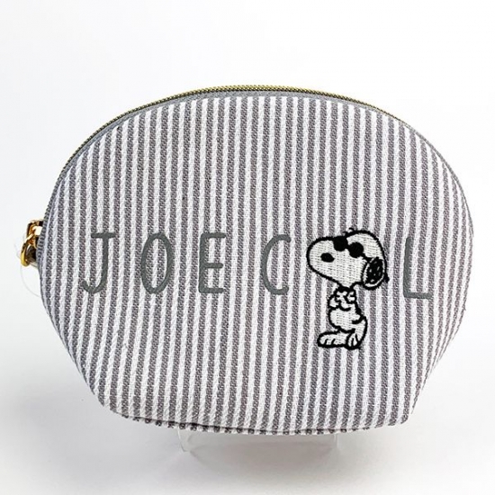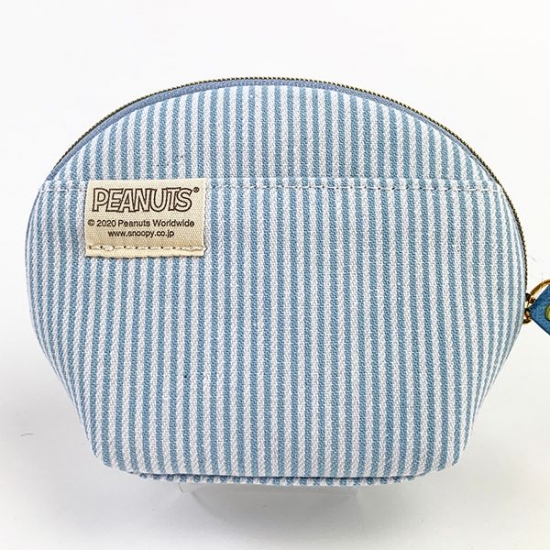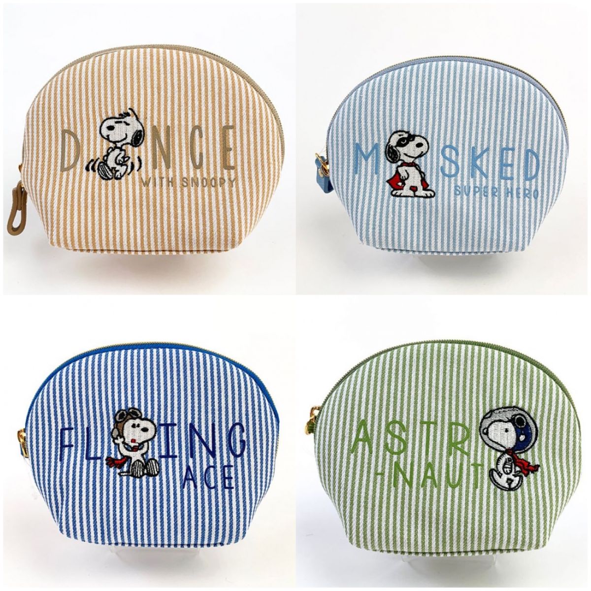 カジュアルなヒッコリー柄が新鮮な、スヌーピーのシェル型ポーチが揃いました。ラウンド型で使いやすく、ストライプでオシャレな仕上がりです♪