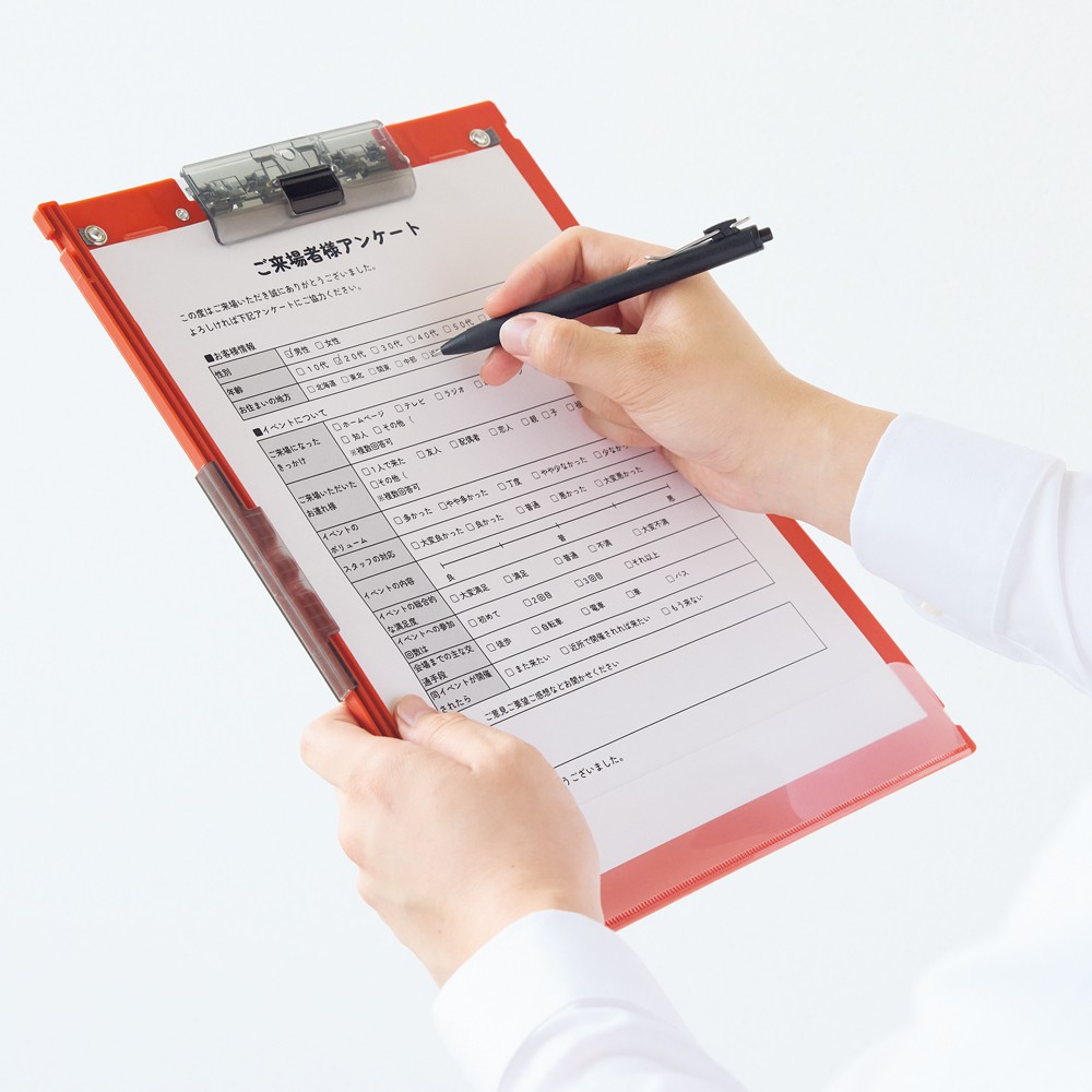 使う時はA4サイズ、持ち運ぶ時はA5サイズに折りたためるクリップボード。