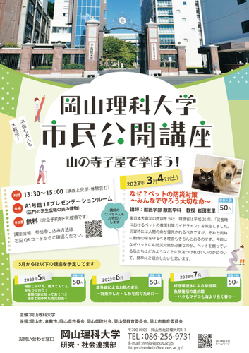 【岡山理科大学】今年度最後の市民講座「災害時のペット避難どうする?」3月4日(土) 参加者募集中