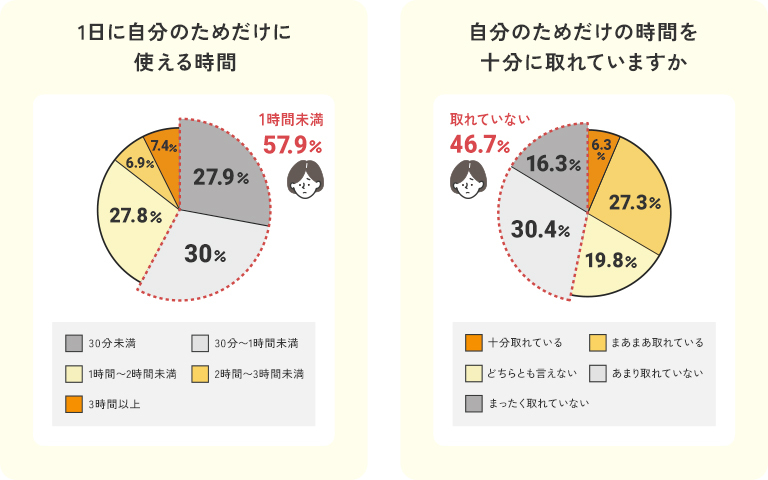 こうした結果から、“1時間以上の自分時間”を生み出すためには、家事や育児負担の軽減や家族の協力が深く関わっていることが明らかになりました。