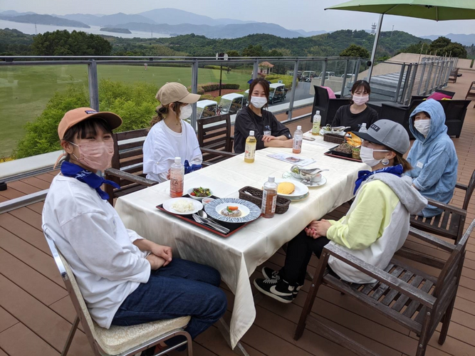 ①ゴルフ場での野外キャンプ(瀬戸内海一望)