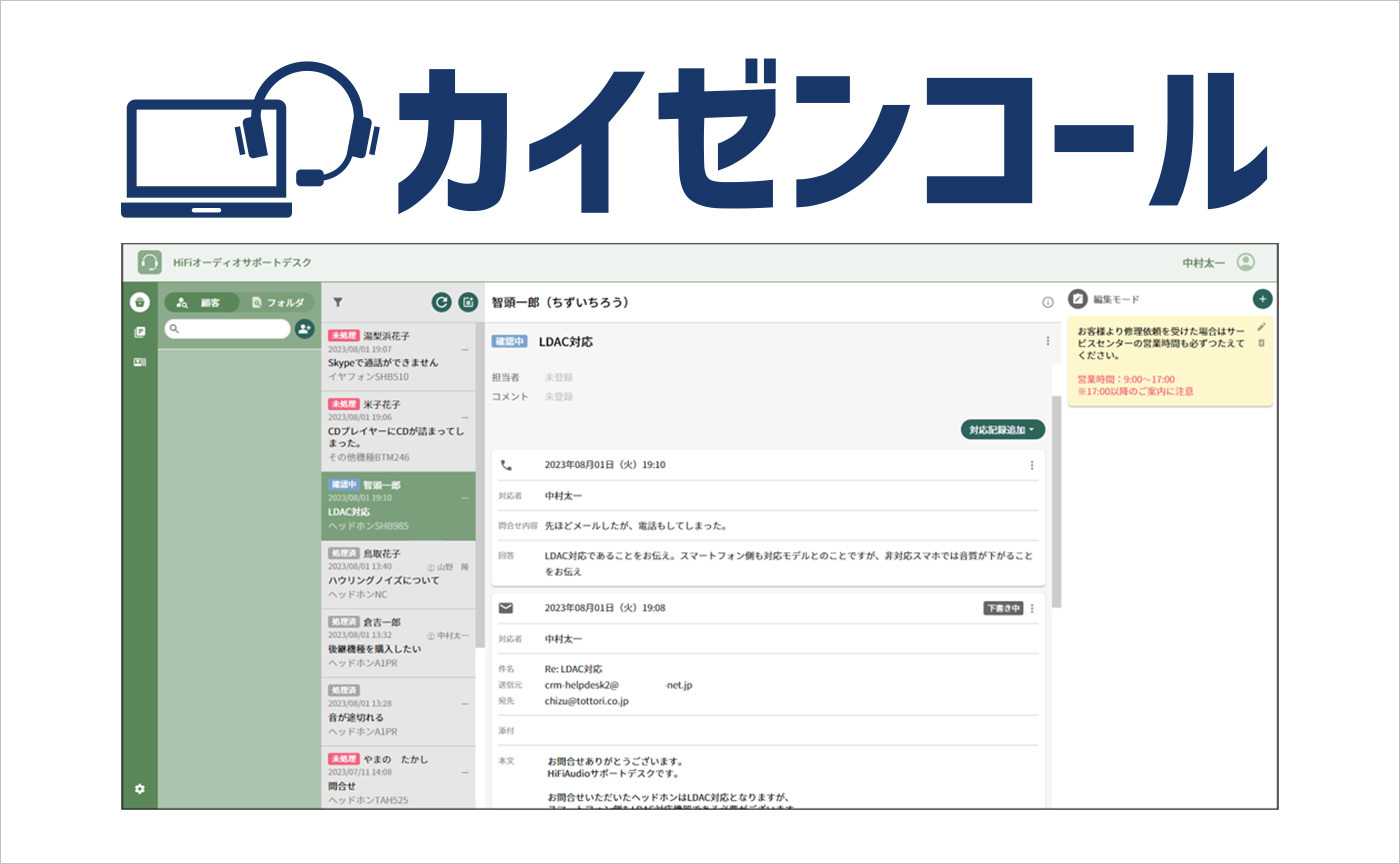企業価値・ブランドイメージを向上させる、 アフターサポート品質改善に特化した新CRMシステム 「カイゼンコール」を2023年10月に発売