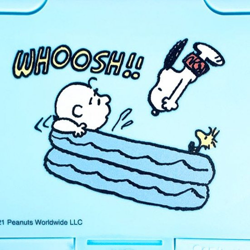 ビニールプールに入ったチャーリーブラウンのもとに、ダイブしようとしているスヌーピー♡勢いつき過ぎな気もしますが、大丈夫でしょうか^^;
