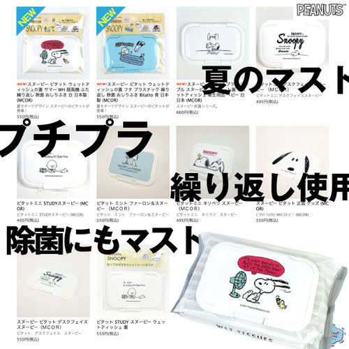 プチプラ、繰り返し使用OK。スヌーピーの新作です。夏に、除菌に色々マストなウェットティッシュデコレーションビタット新柄♪