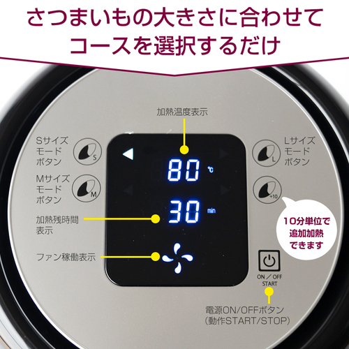 サツマイモの甘みを最大限に引き出す「2段階焼き」がワンアクションでセット完了。