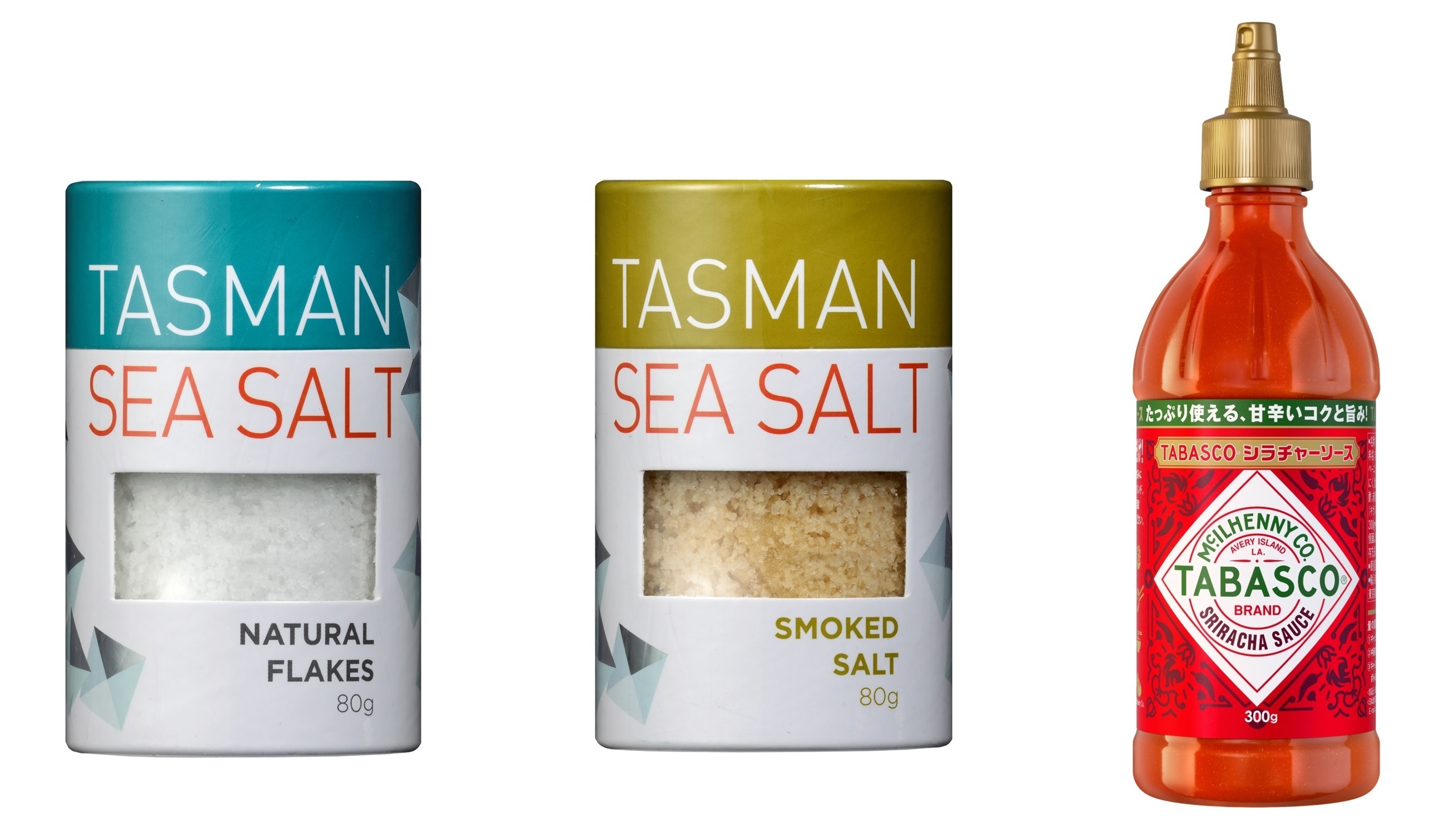 2023年度秋冬季 明治屋直輸入食品 オーストラリア産海塩「タスマンシーソルト」2アイテム アメリカ産TABASCO(R)ブランド「シラチャーソース」1アイテム 新発売のご案内