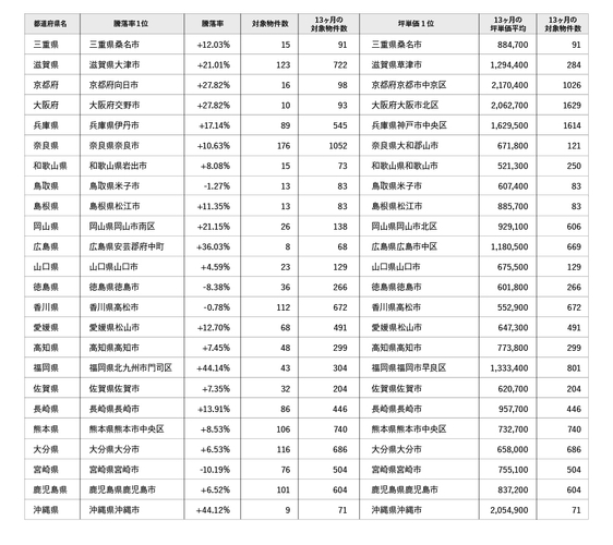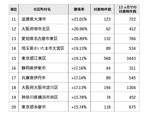 ・全国1位は「福岡県北九州市門司区」の+44.14%。