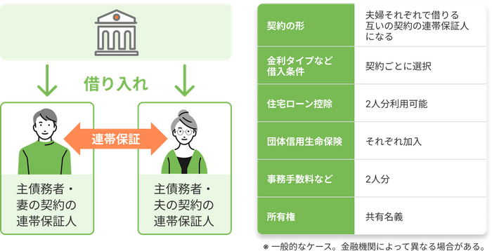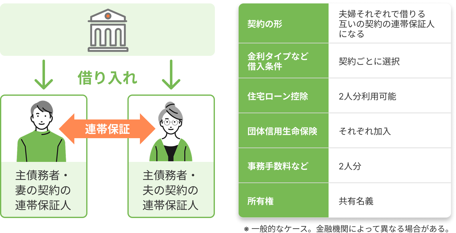 • ペアローン:同じ物件に対して夫婦それぞれが別々に住宅ローンを契約する方法。
