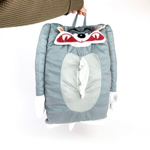 こちらの迫力あるティッシュケースもおすすめです♪箱型につぶれてしまったトムが悔しそうなお顔をしているティッシュケース。手としっぽが付いているのがポイント!トムのお腹からティッシュが出せるんです!
