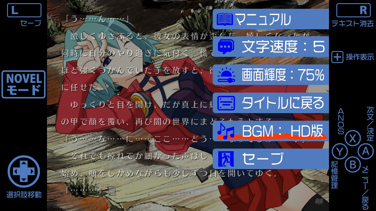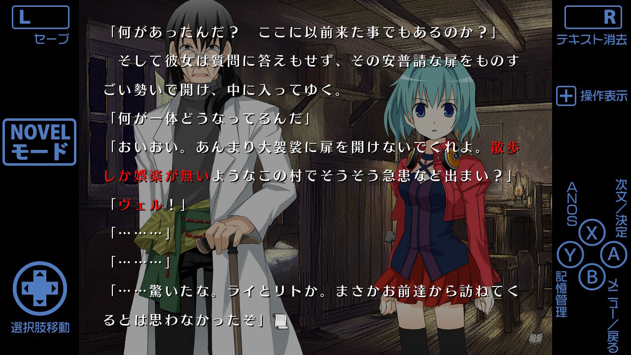これらの行為を能動的に行う事を促進、補佐するANOS(システム)は、ノベルゲームでありながら高いゲーム性を発生させる礎となります。