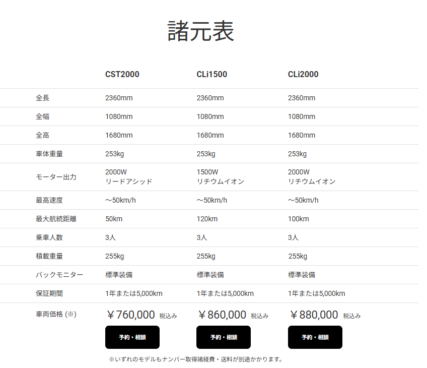 CST2000(2000W・リードアシッド):航続距離約50km、価格は税込76万円