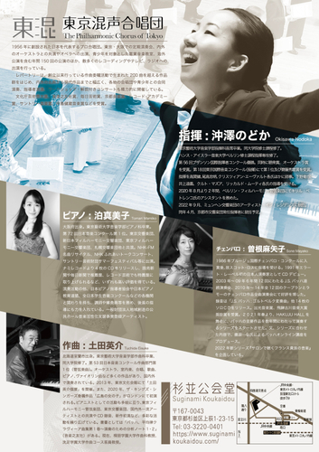 一般財団法人合唱音楽振興会主催、『東京混声合唱団 第259回定期演奏会』が2022年11月26日 (土)に杉並公会堂 大ホール(東京都杉並区上荻1-23-15)にて開催されます。