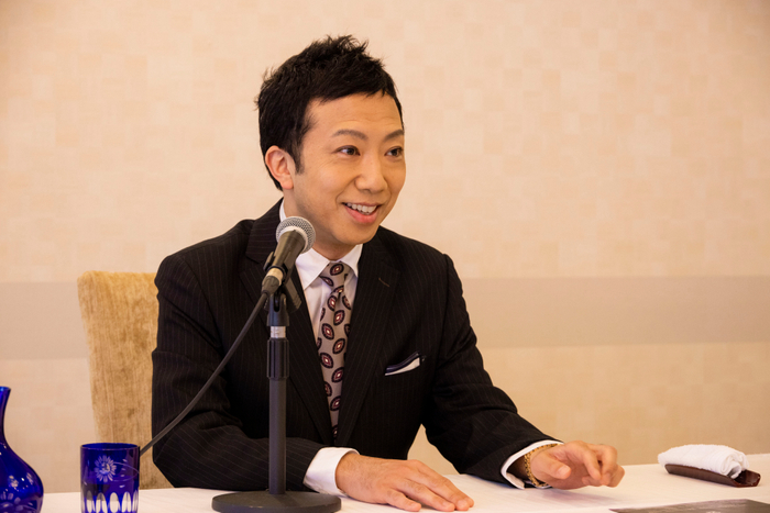 中村壱太郎との共通点は“大学”。「彼は慶應義塾大学の後輩で、僕は文学部ですが、彼は環境情報部で、慶應の中でも一番頭がいいと言われているSFCというところです。このあいだまで通っていたと思ったら、もう卒業されていますけど、歌舞伎役者としても僕に近いタイプなんです。社会の中でちゃんと暮らしていける役者だと思います(笑)。つまり、今日の為替で1ドルいくらなのか、世界のどこで争いが起こっているのか、どういう状況なのか、今の日本の物価などもわかるタイプの人間です。彼は珈琲屋でバイトをしたり、歌舞伎以外の生活もしていましたし、一般常識のある役者です。もしかしたら、昔の役者からすると、僕ら二人は非常につまらない人間かもしれないけど、社会の中で見たら真っ当な二人がやる、真っ当な会となります。それを見ていただきたいと思います」と、ユーモアを交えて紹介。