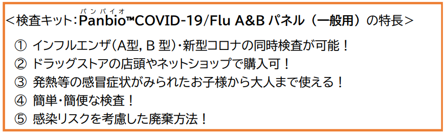 自宅でセルフチェック!インフルエンザ・新型コロナを同時に検査! ~検査キットPanbio™COVID-19/Flu A&Bパネル(一般用)のご紹介~