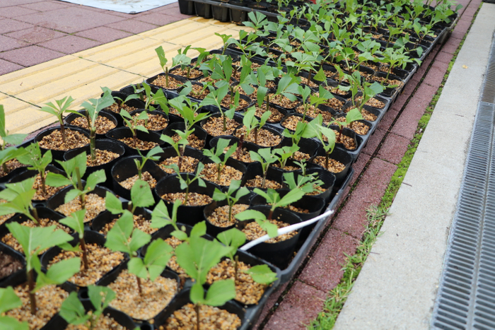 7月9日(日)には、本年5月21日(日)に立命館大学衣笠キャンパスで「挿し芽」(さしめ。苗を育苗ポットに分けて増やす作業)を行い作った育苗ポット600個の苗を、嵐電の10駅へ植栽します。