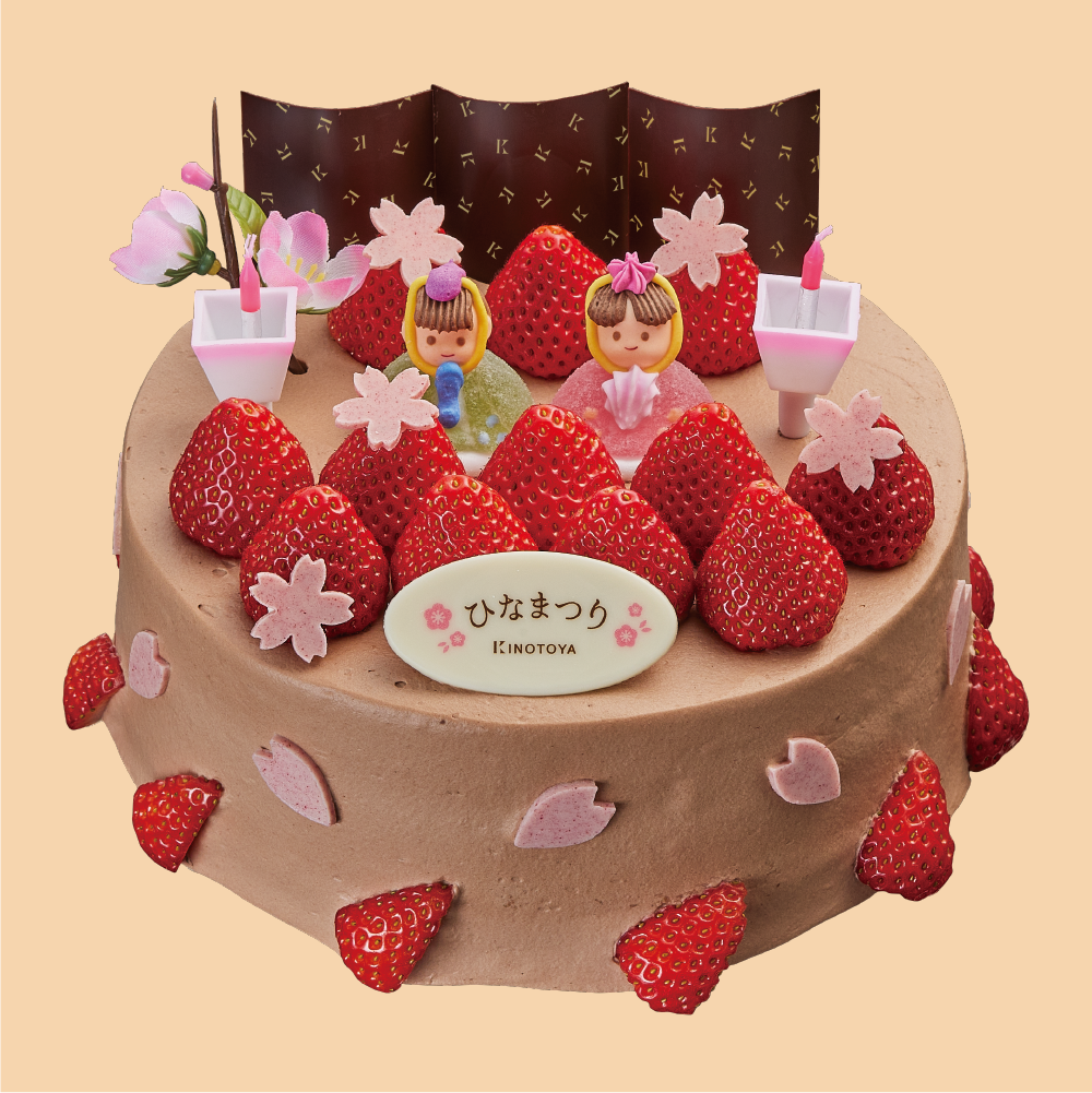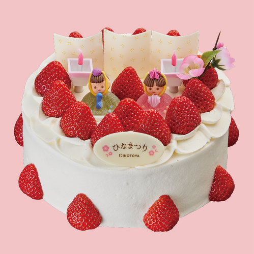 真っ赤ないちごやかわいらしいおひなさまをのせ、フレッシュな生クリーム、ふわふわのスポンジで仕上げた、特別なひなまつりケーキをご用意いたしました。すこやかな成長を願う、ひなまつり。大切な節目の日には心をこめたきのとやのケーキが花を添えます。