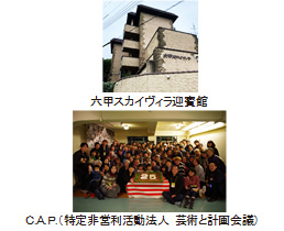 地元、神戸でアート活動に取り組むC.A.P.(特定非営利活動法人 芸術と計画会議)の出展が決まりました。会場の一つである「六甲スカイヴィラ」の展示エリアを一部拡げ、2010年12月末以来遊休化していた5階建ての宿泊施設(迎賓館)の一棟全体を「C.A.P.」関連アーティストの作品展示スペース「六甲イカスヴィラ」として使用します。
