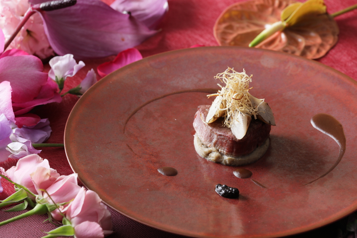 「世界一の桜並木」で有名な「青森県」を題材に、愛知県から青森県までの桜前線をイメージし、4月・5月限定メニューを料理長が創作。桜の葉の上にのせた鰆を、青森県産昆布・レモンバーム・海藻とともにお客様の目の前で蒸しあげる魚料理や、肉の旨味をしっかりと感じることができ、ステーキに最適な「北海道士幌若牛」を、3種の調理法で仕上げた新牛蒡と合わせ、アーティスティックに仕上げたメイン料理など、“春”を堪能いただける料理の数々をご用意。