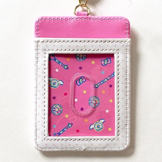 こちらはパスケースです。どれみやおんぷ、ももこもいますね♪さらに、サンリオのキャラクターであるキティちゃんやマイメロたちも一緒です♡夢のコラボですね。