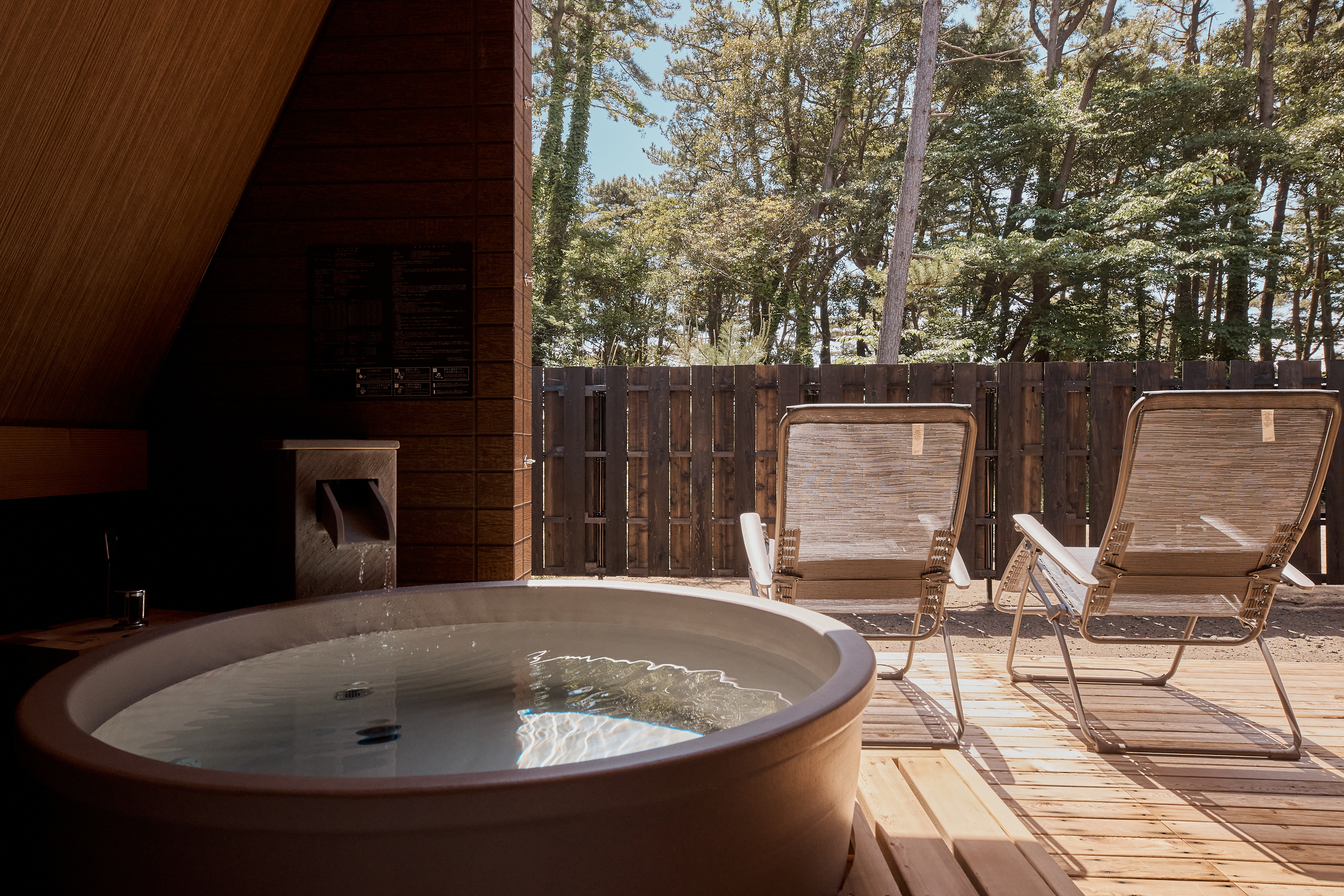 全10棟に大洗温泉の露天風呂と世界シェアNo.1のハルビアのサウナヒーターを完備。