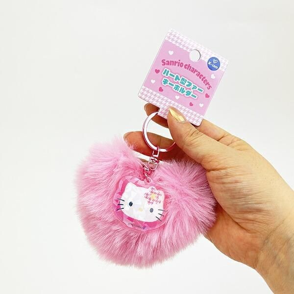 サンリオのキュートなハート形のファーキーホルダー