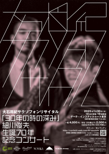 サクソフォン奏者の大石将紀は、互いに敬信する作曲家 細川俊夫生誕70年を記念し細川作品を集めた演奏会を開催。都内で細川の室内楽作品がこれほど一堂に演奏されるのは久しぶりの機会となり、まさに名手大石将紀による現代サックスのスタンダードを魅せる好機となる。