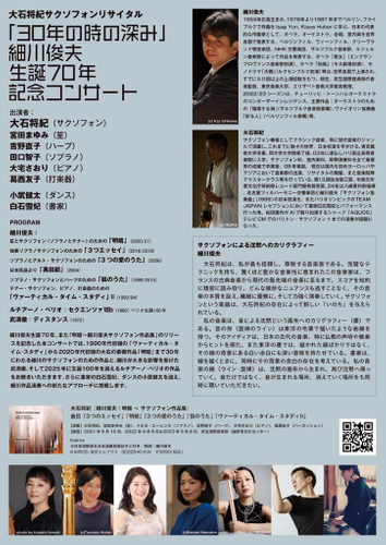 作曲家・細川俊夫生誕70年記念 現代サックスの名手 大石将紀サクソフォンリサイタル開催決定
