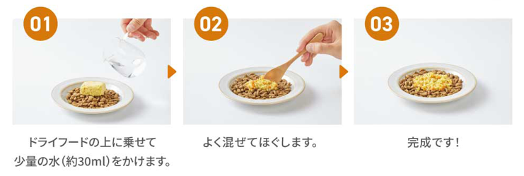 少量の水・お湯をかけて戻すだけで、手間も時間もかけずに、おいしさと楽しさをプラスできます。フリーズドライだから冷蔵・冷凍不要。常温で保存可能。