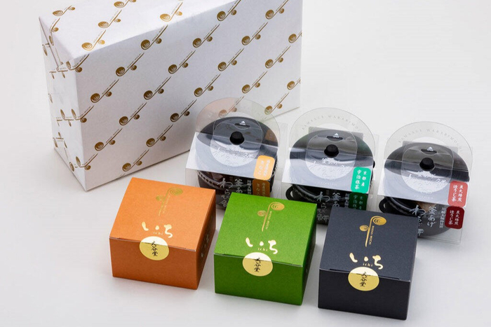 職人が銅釜で約1時間じっくりと練り上げることで完成する、大谷堂のわらび餅。ぷるっと食感の王道わらび餅の「いち」3種類と、とろ~り食感の作り立てのようなおいしさを味わえる「釜あげわらび餅」3種類の食べ比べが楽しめます!「釜揚げわらび餅」はレンジで温め、スプーンで練ると驚くほど伸びる!この熱々とろ~りとした食感は一度食べたらハマること間違いなしです。
