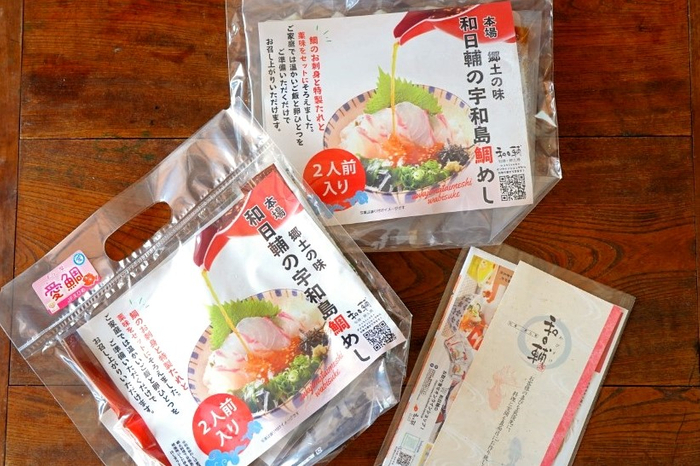 セットには鯛のお刺身、特製たれ、薬味が入っているので、ご家庭では、あたたかいご飯と生卵を準備するだけでOK◎簡単調理で本格的な宇和島鯛めしを味わえると好評です。甘めの特製たれが、鯛や生卵、白ご飯とよく絡み、絶妙な美味しさ…!ご飯をかき込む手が止まらなくなりますよ。